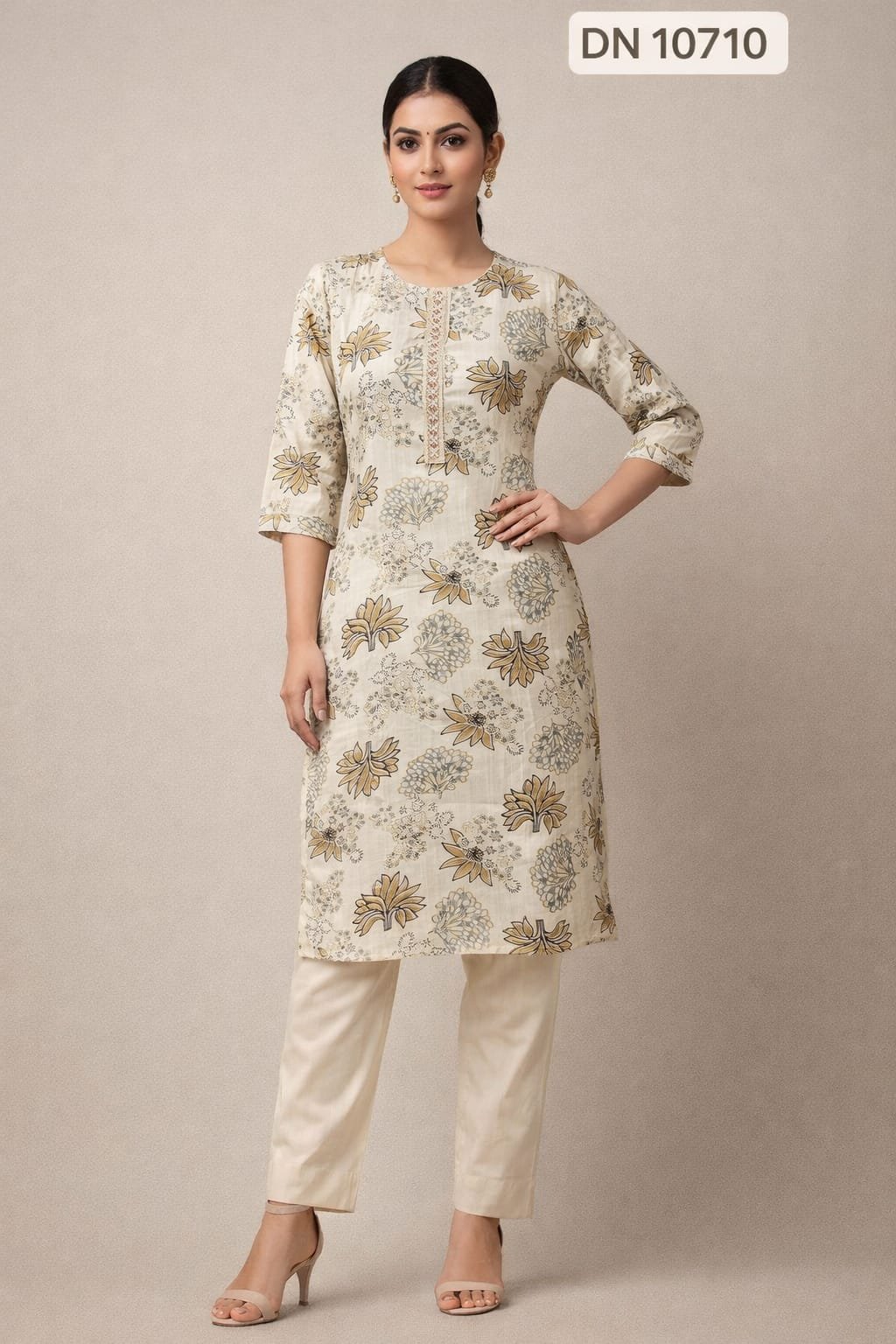 Embrace timeless elegance with this beautifully crafted floral kurta set, featuring intricate patterns and a modern, tailored fit. Perfect for your daily wear, it seamlessly blends traditional charm with contemporary style for an effortlessly chic look